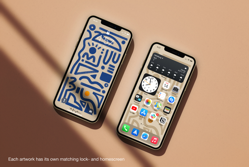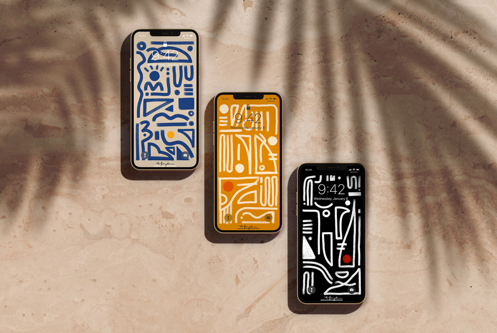 A set of three exclusive artworks designed for iOS 14 on iPhone 12, 11 and X (parallax supported) + three matching home screen wallpapers to complete the experience.